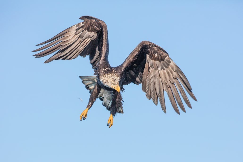 With a population estimated at 30,000, or about half of the total population, Alaska boasts more bald eagles than any other location on the continent. The Bald Eagle is only found in North America, and for the most part, they call home forests that are near rivers, lakes, reservoirs, marshes and coasts. Bald Eagles are often found along Alaska’s coast and offshore islands where the highest nesting densities occur in southern portion of the state.